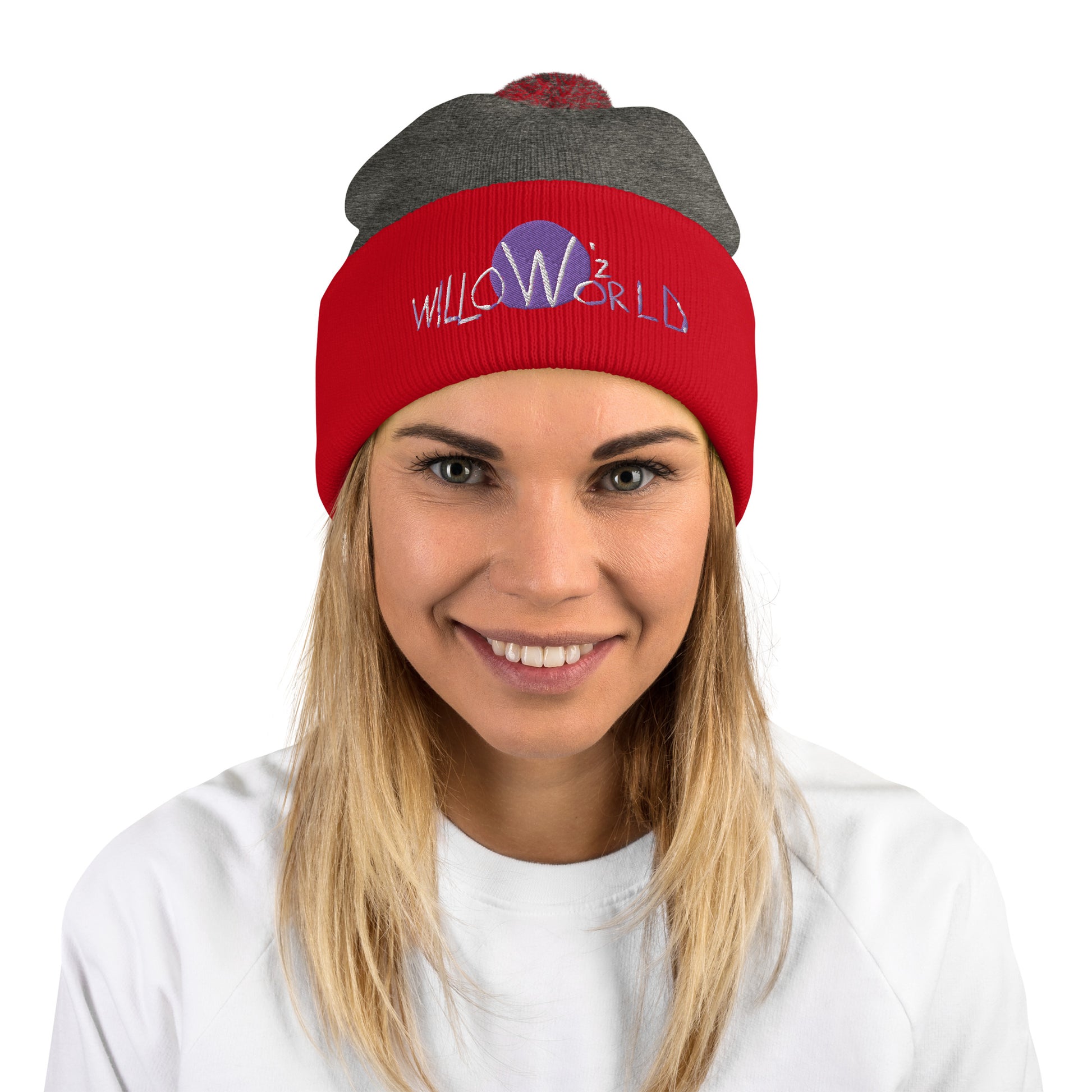 Show your support with a Willow'z World Logo embroidered beanie. Finished with a pom-pom on top, it offers tons of warmth and comfort, and is destined to find its way into all your favorite cold-weather looks.